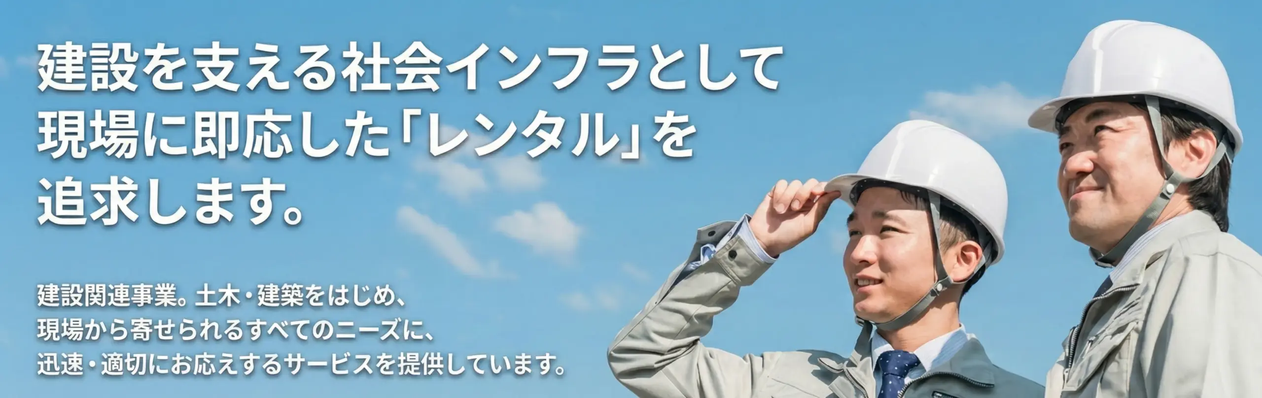 必要な時に必要な資材・機材をスピーディーに提供。現場事務所の設営から重機の手配まで、現場の効率化をトータルでバックアップします。